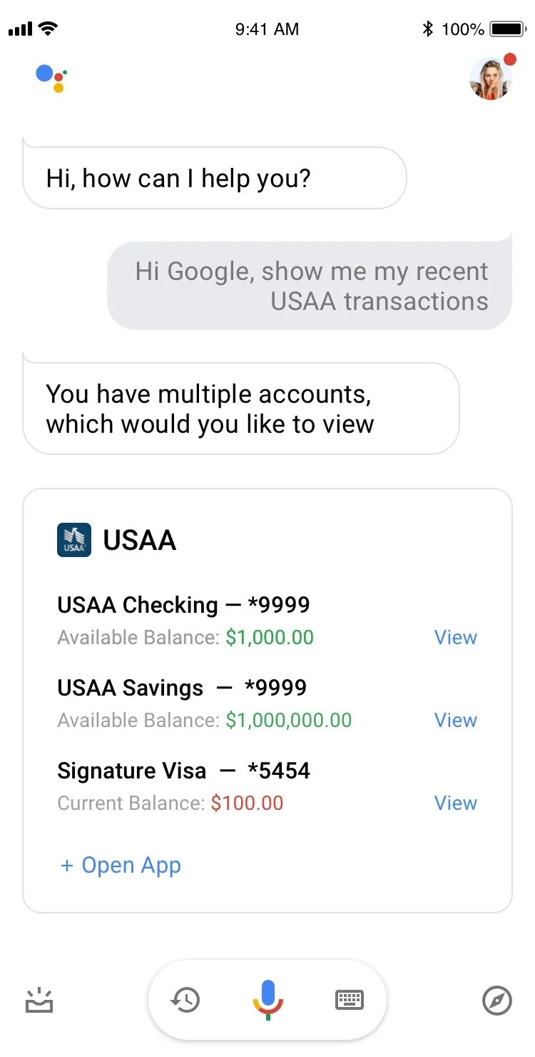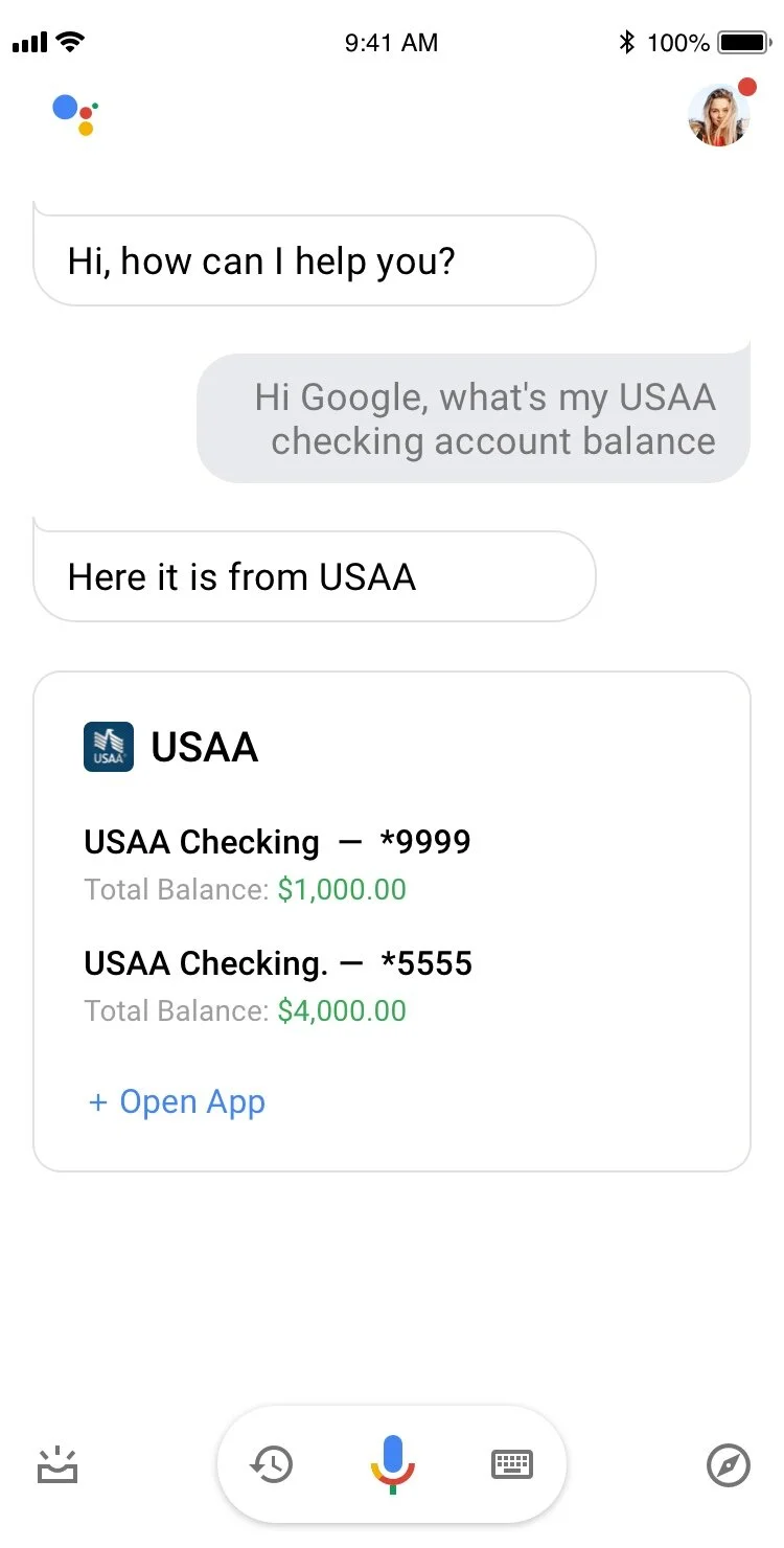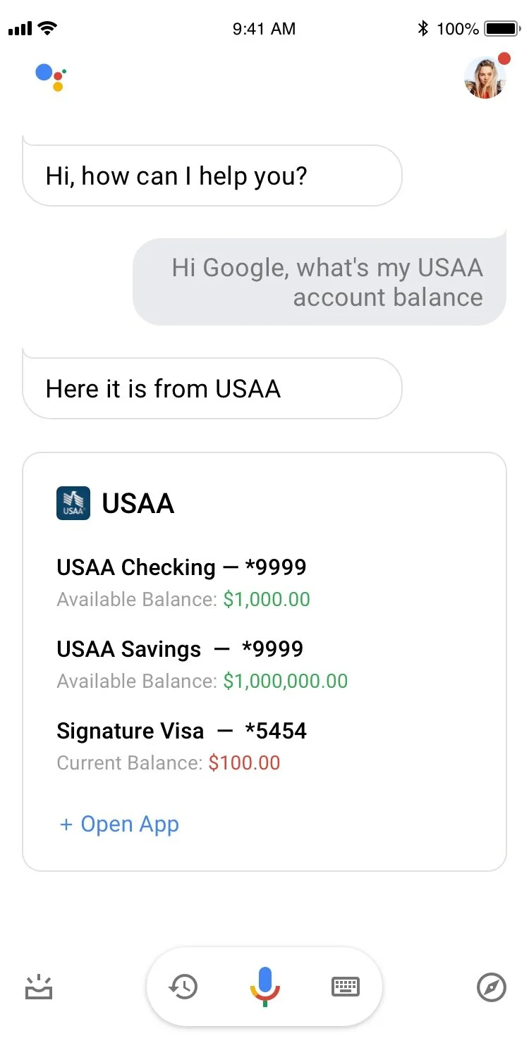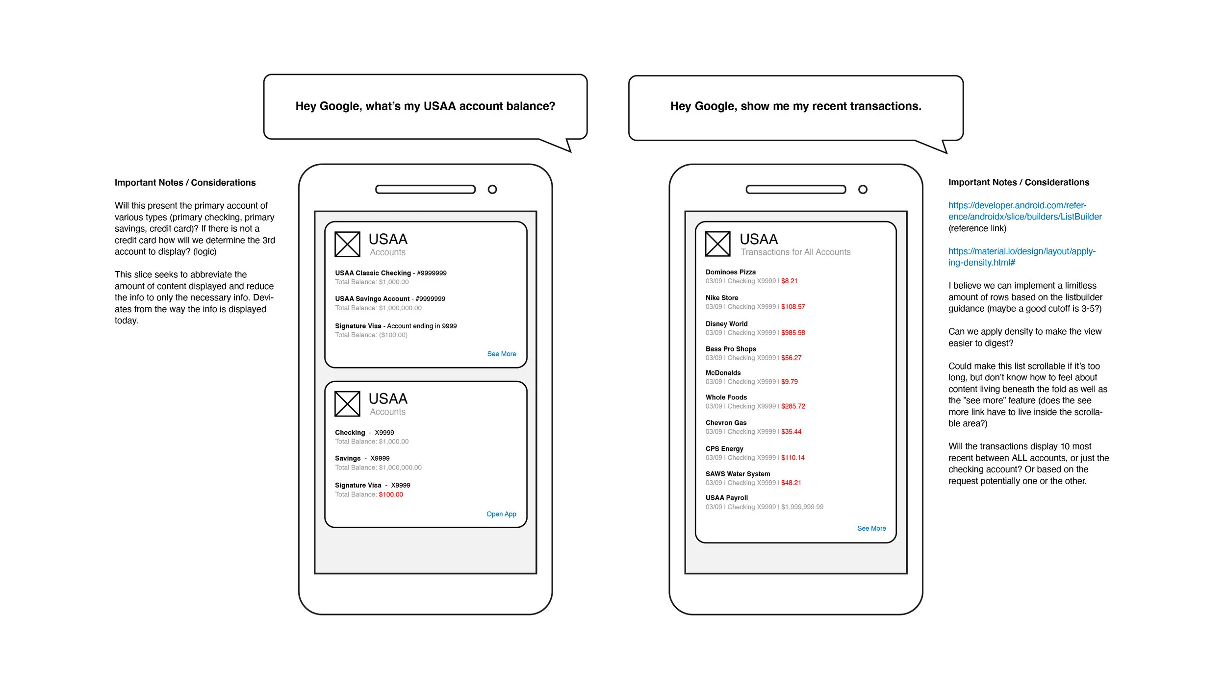 As mobile platforms evolve, people seek to interact with services through their preferred channels. The industry's focus on personal assistants like Alexa, Siri, and Google Assistant for information provision is growing. Currently, USAA app users need to log in to access information. Through Android actions and slices, we explored the potential of a post-application world, driven by voice, to remain competitive and thrive in the emerging digital consumer ecosystem. The primary target aimed at interactions that were more "read-only" in nature.