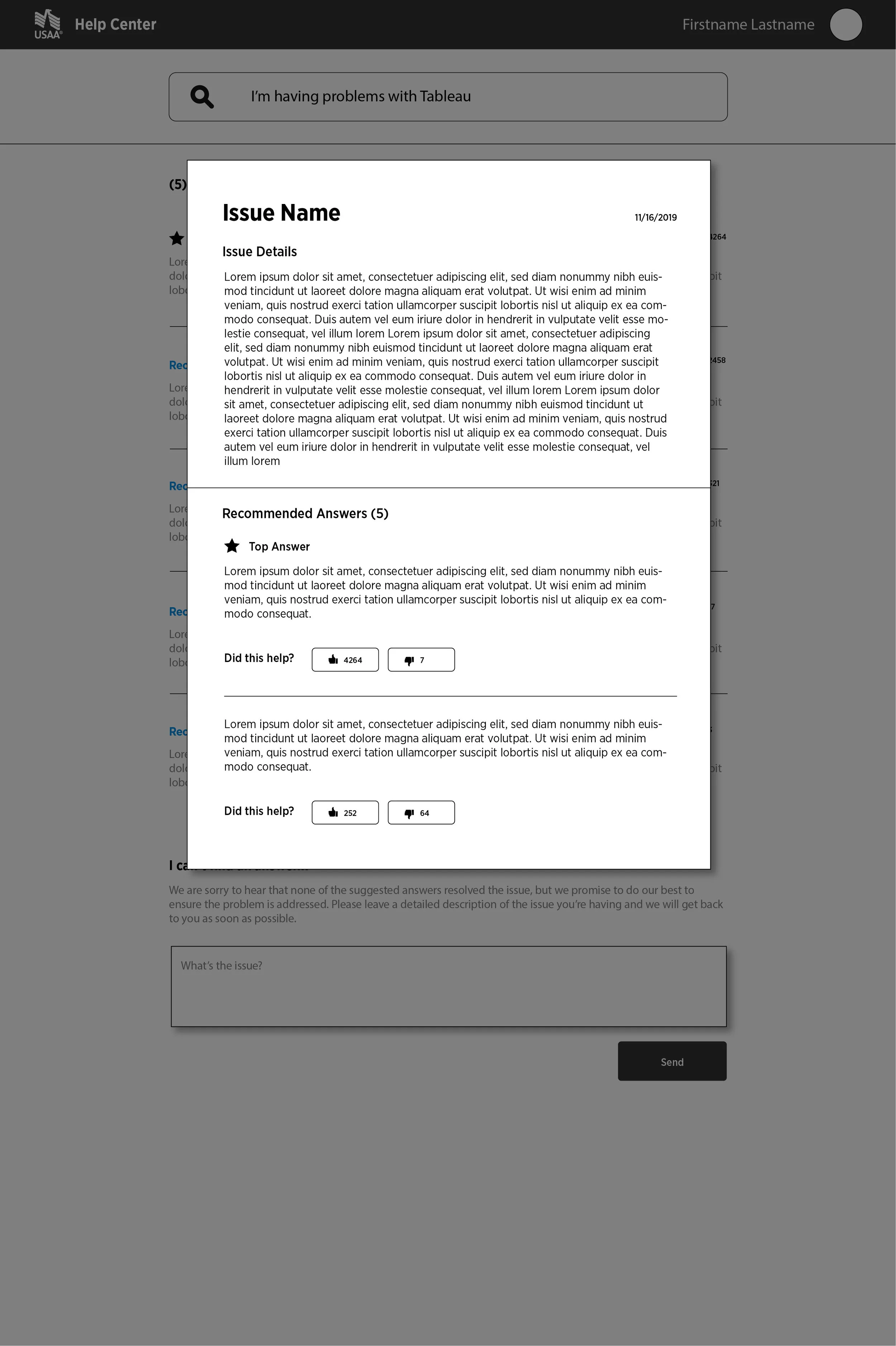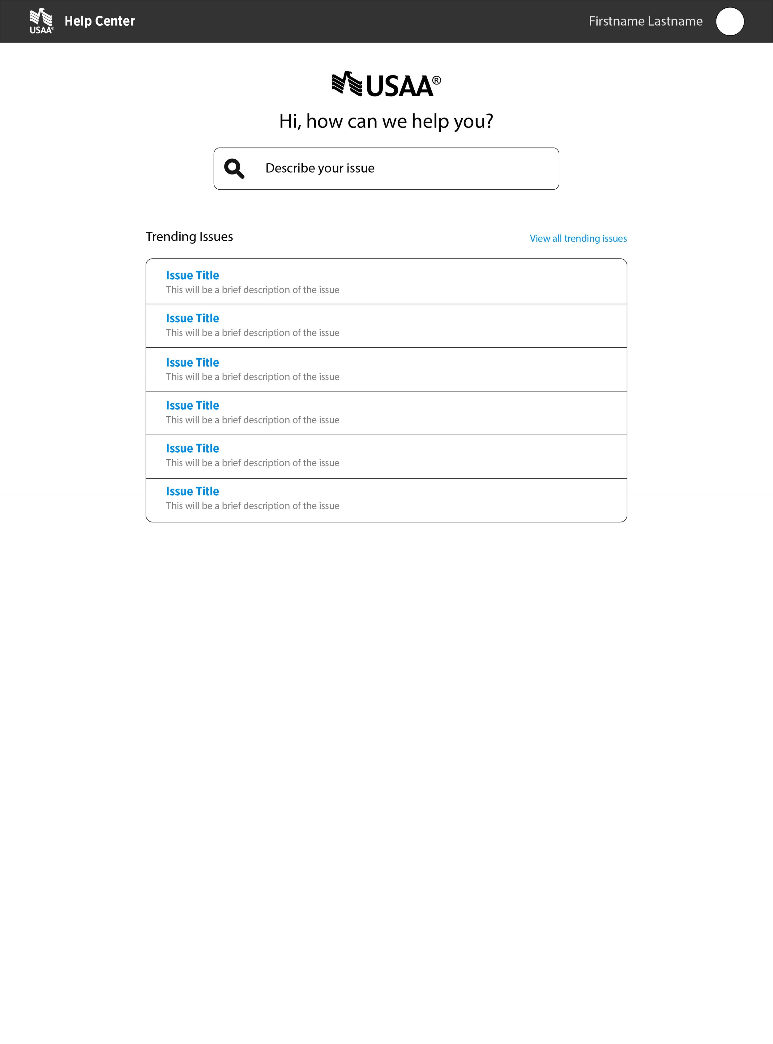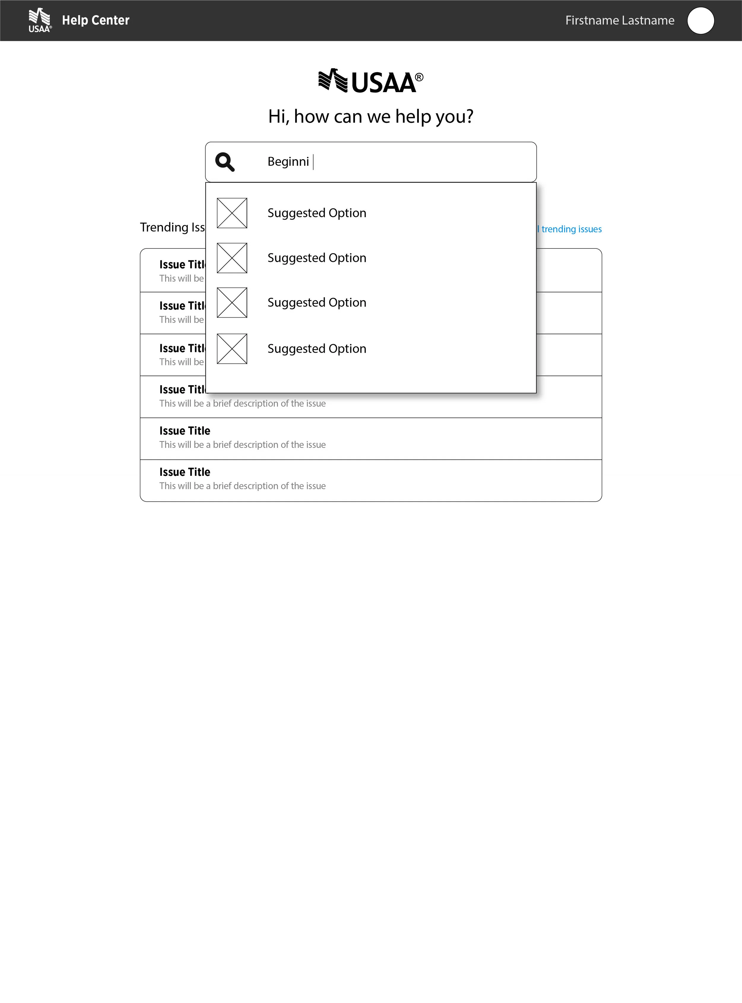 We ended up landing on two potential options. We combined the FAQ / “Ask Jeeves” options into one version. The FAQ website was built with HTML, CSS, and JavaScript (by me) and the back-end technology was incorporated by our developers. The chat bot prototype was also coded and presented to our business partners as well. The initial comps for the flow were built using Sketch.